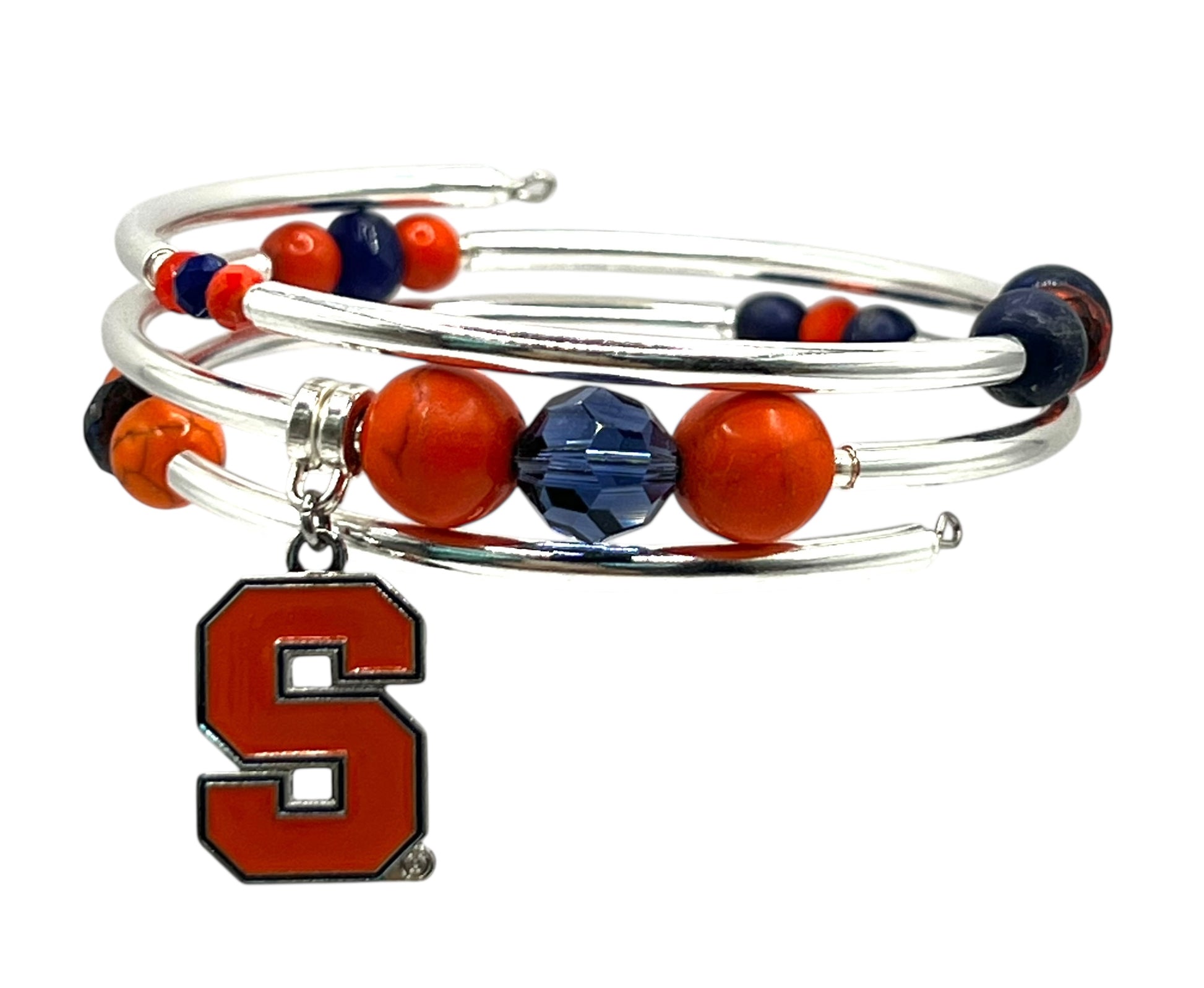 Lightweight for all-day tailgating yet makes an impact on the wrist! Made with a mix of stones, crystals, glass and acrylic components. Maintain its beauty with a silver polishing cloth.